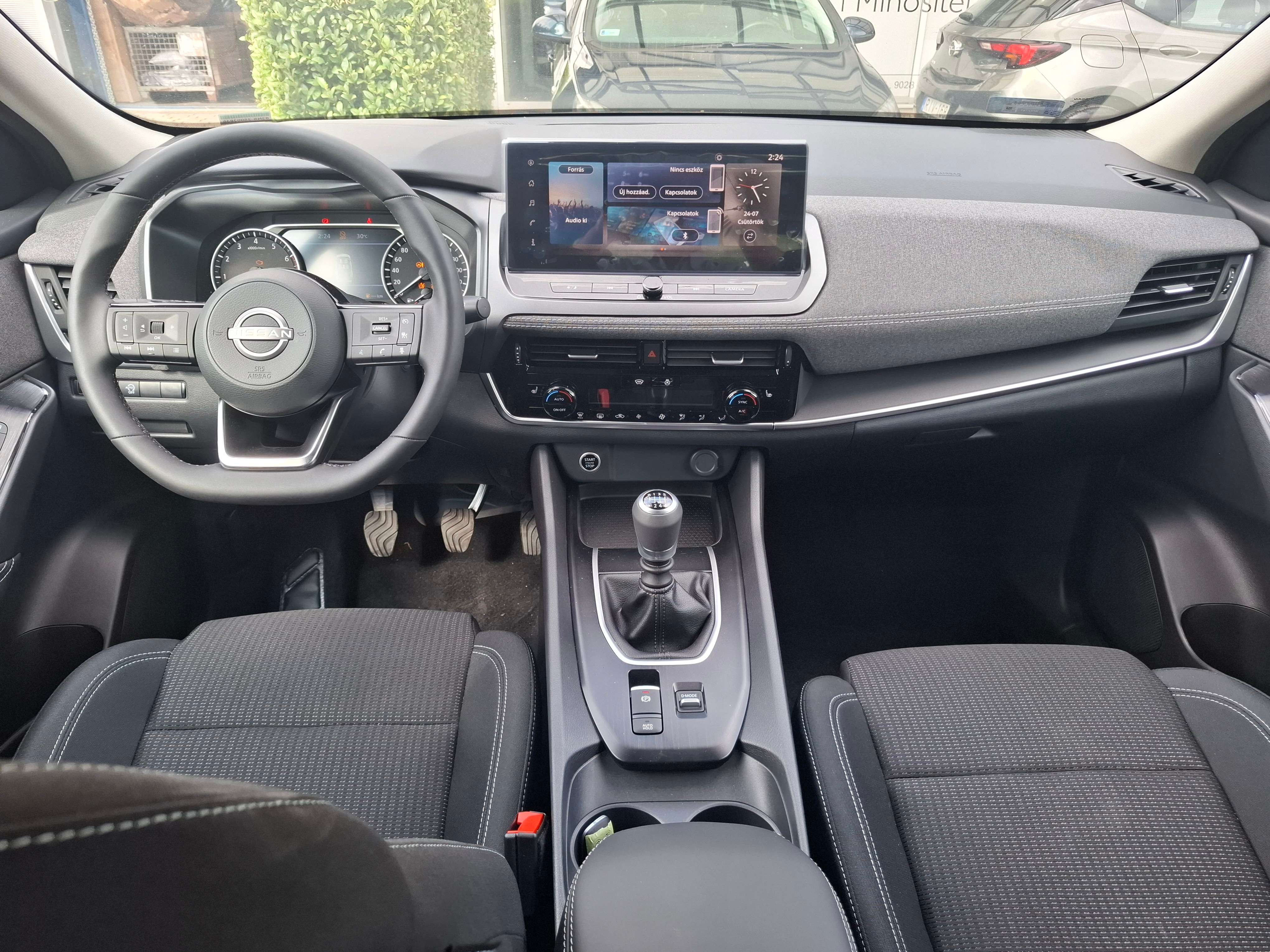 Új Nissan Qashqai (MY24) 1.3 DIG-T Mild Hybrid 158LE 6MT (kéziváltós) Acenta felszereltséggel és téli csomaggal (fűthető első ülések, fűthető kormánykerék, fűthető szélvédő). készletről azonnal megvásárolható. A vételár a metálszürke (KAD) fényezés felárát is tartalmazza. Felszereltségének részét képezi az első-hátsó LED fényszóró, a tolatóradar és -kamera, a 12,3”-os érintő képernyő okostelefon tükrözéssel (Android Auto, Apple CarPlay), az intelligens kulcs, a kétzónás automata klíma, az adaptív tempomat, az intelligens ráfutás megelőző és vészfékező rendszer (gyalogos-, ill. kerékpáros felismeréssel, kereszteződés támogatással), az automata tolatási vészfék, az intelligens holttér-figyelés, a hátsó keresztforgalom figyelmeztetés és számos más biztonsági és kényelmi funkció. A hirdetés fotói illusztrációk. További információért hívja munkatársunkat a 20/399-4799 telefonszámon!